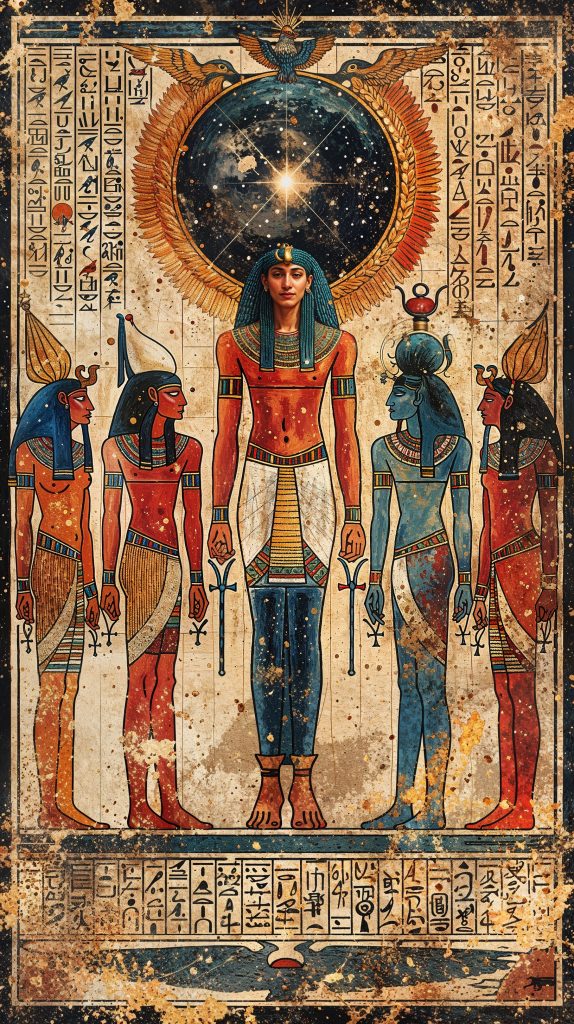 La Civilización Egipcia en el antiguo Egipto su religión impregnaba cada aspecto de la vida. Sus dioses, lejos de ser simples figuras de culto, representaban fuerzas cósmicas, fenómenos naturales y valores éticos. No existió un único «libro sagrado» que relatara su origen; más bien convivieron varias cosmogonías locales que se complementaban y, a veces, competían entre sí. Las tres más influyentes fueron: